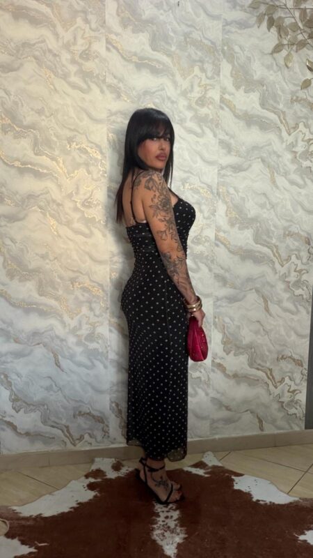 Aggiungi alla WishlistRemove from WishlistScegliAggiungi alla Wishlist25,00 €Abito a fascia lungo e aderente ,composto da fodera interna in maglina elastica e tessuto esterno in tulle a pois elastico , bretelline sottili ,veste 38-46