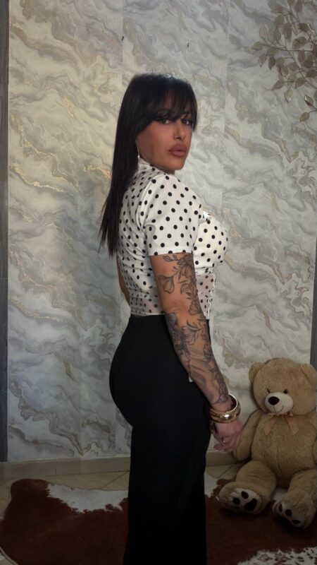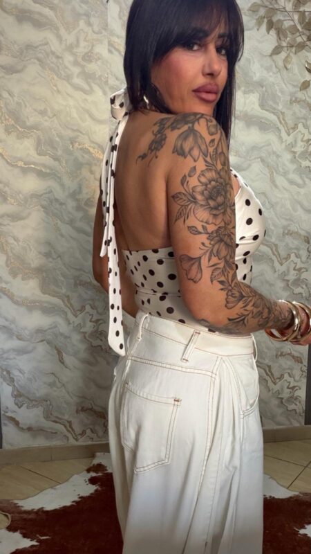 Aggiungi alla WishlistRemove from WishlistScegliAggiungi alla Wishlist18,00 €Body a pois con allacciatura dietro al collo , scollato sul davanti , porta le coppe interne , tessuto in lycra effetto lucido , elasticizzato , consiglio da una XS a L