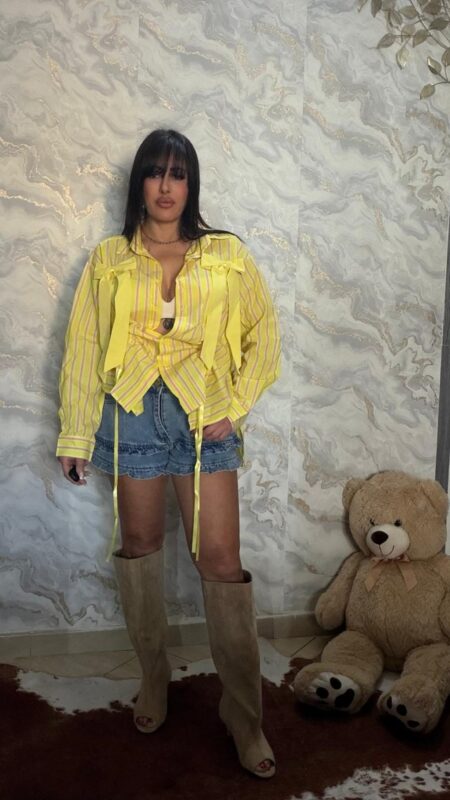 Aggiungi alla WishlistRemove from WishlistScegliAggiungi alla Wishlist30,00 €Camicia in cotone a righe, con fiocchi e lacci regolabili (si puó tenete lunga oppure accorciarla ) , modello largo con spacchi laterali ,veste XS-XL